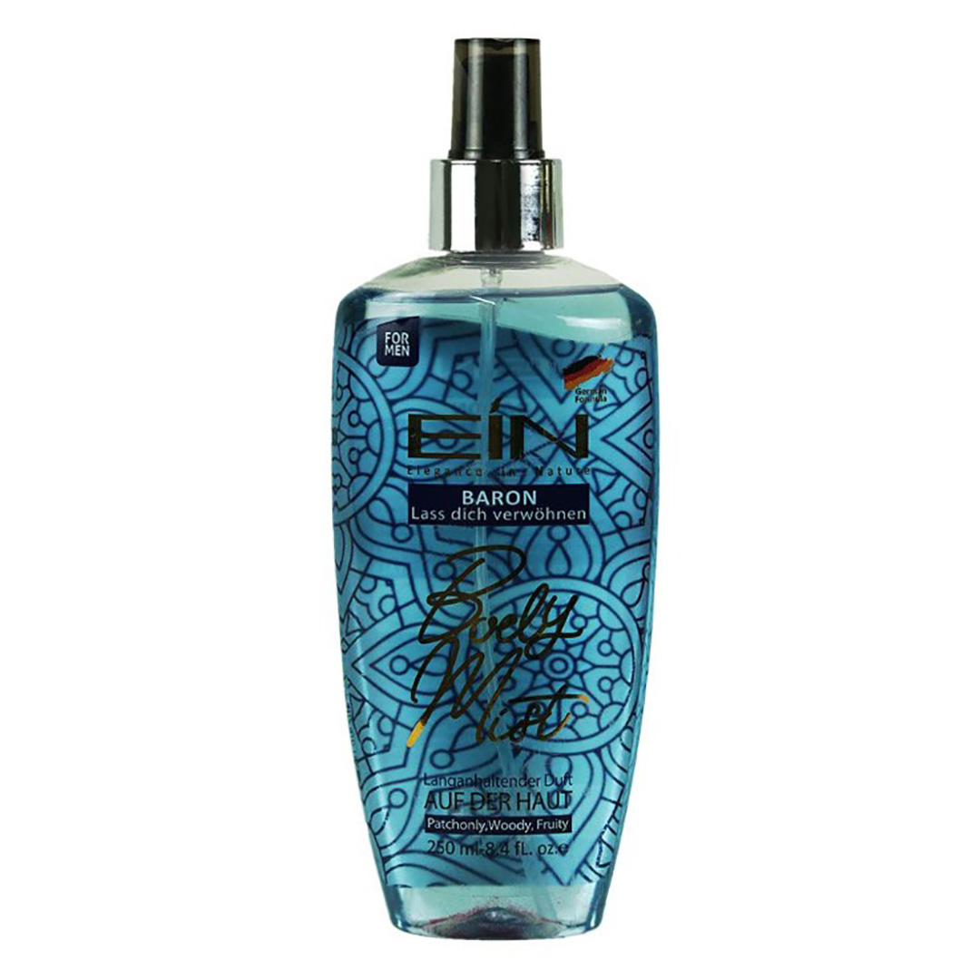 بادی اسپلش بارون اقایان ای آی ان یک خوشبوکننده بدن باکیفیت و مدرن است که حاصل همکاری مشترک دانش آلمانی و تولید ایرانی می‌باشد؛ این محصول با رایحه‌ای شاداب و انرژی‌بخش، مخصوص آقایانی طراحی شده که به دنبال تجربه‌ای متفاوت از تازگی و اعتماد به نفس در روزهای پر فعالیت هستند؛ ترکیب بویایی این بادی اسپلش با نت‌های مرکباتی و میوه‌ای آغاز شده و در ادامه با نت‌های چوبی و مشک به تعادل می‌رسد؛ بادی اسپلش بارون علاوه بر ایجاد عطری ماندگار، دارای فرمولاسیونی مرطوب‌کننده است که از خشکی پوست پس از استحمام جلوگیری کرده و به آن نرمی و لطافت می‌بخشد