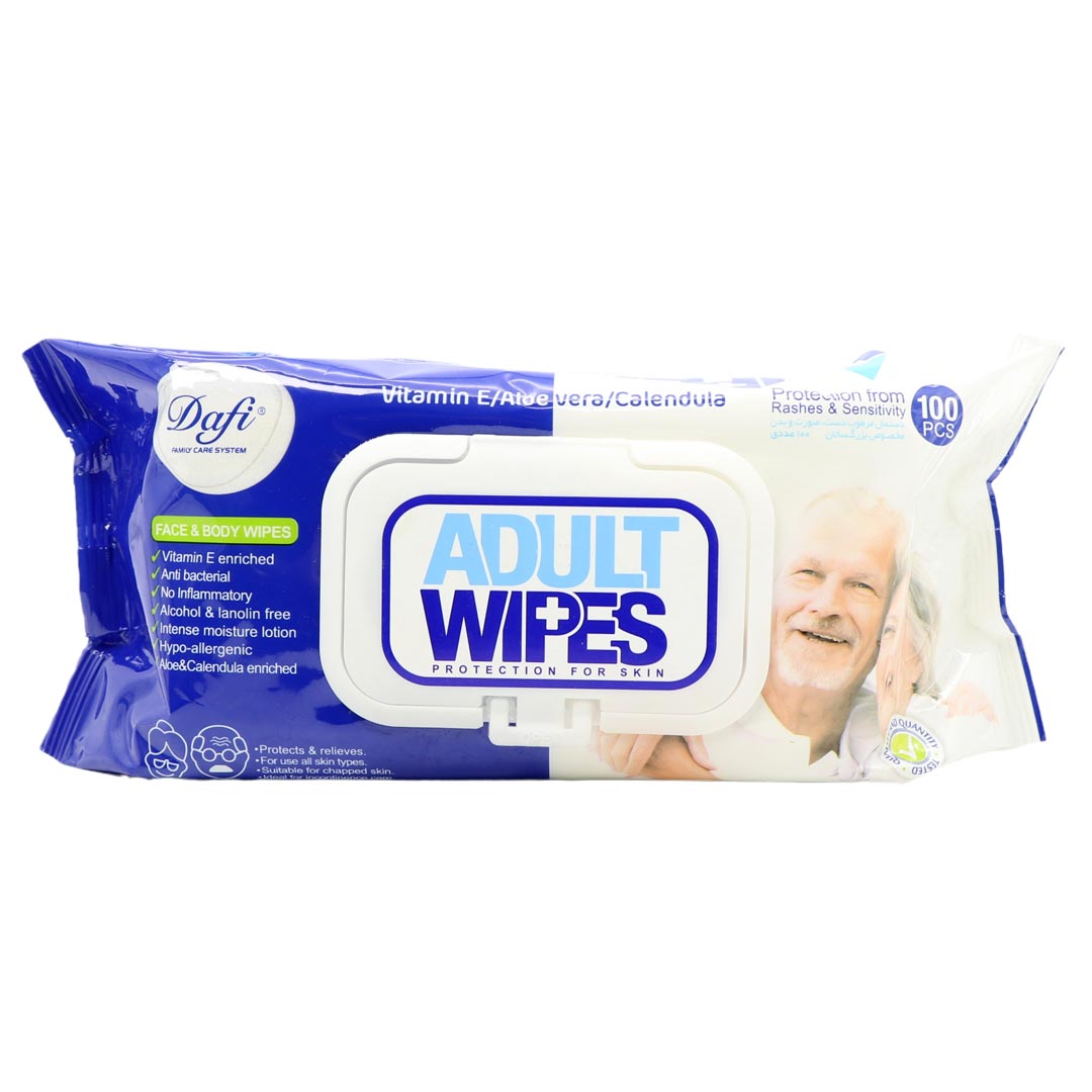 دستمال مرطوب پاک کننده بزرگسال درب دار دافی 100 عددی