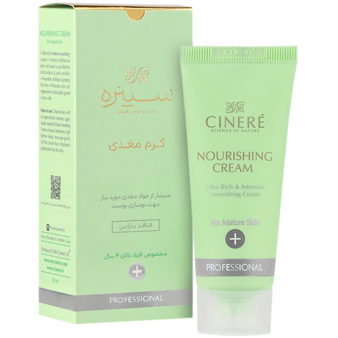 فرمولاسیون ویژه این محصول با خاصیت آنتیاکسیدانی قوی، از پوست در برابر استرسهای اکسیداتیو، آلودگی و آسیبهای محیطی محافظت میکند. کرم مغذی سینره بالای ۴۰ سال بدون پارابن بوده و برای پوستهای حساس نیز مناسب است. این کرم ضمن حفظ رطوبت طبیعی پوست، موجب نرمی، لطافت و درخشش طبیعی آن میشود.